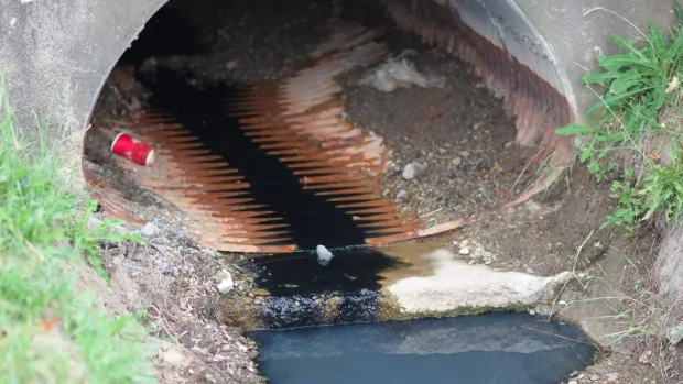Another visit four days later showed the water was still black and murky. Some spots are clearer as water runs down the ditch, but the acid appears to travel the entire length of the drain.
