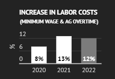As Californians, we’ve raised wages $1 per hour per year for the last five years to a nation leading $15. 00 per hour and have standardized a 40-hour work week for agriculture employees while the standard work week was 60 hours in 2018. We grow our produce under the most progressive environmental policies within the U. S. and continue to deal with the rising cost of transportation driven by the global backlog in the supply chain. The increased minimum wage year after year in conjunction with reducing regular time and increasing overtime hours has compounded the labor cost increases.