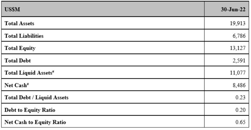 • Liquid assets of US$11.1 billion as at 30th June 2022