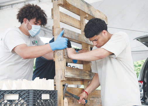 All week last week and this week crews from ROCA and other volunteers have been hard at work in the PORT Park extension building the pallets into useful barriers. Louis Gonzalez, a grad student from MassArt, has been hired by the City as a contractor this summer to assist the businesses in setting up their outdoor dining – mostly in the downtown area. However, Ambrosino said the program is open to any restaurant in any part of the city that can identify sidewalk space or a parking spot in front of their establishment.