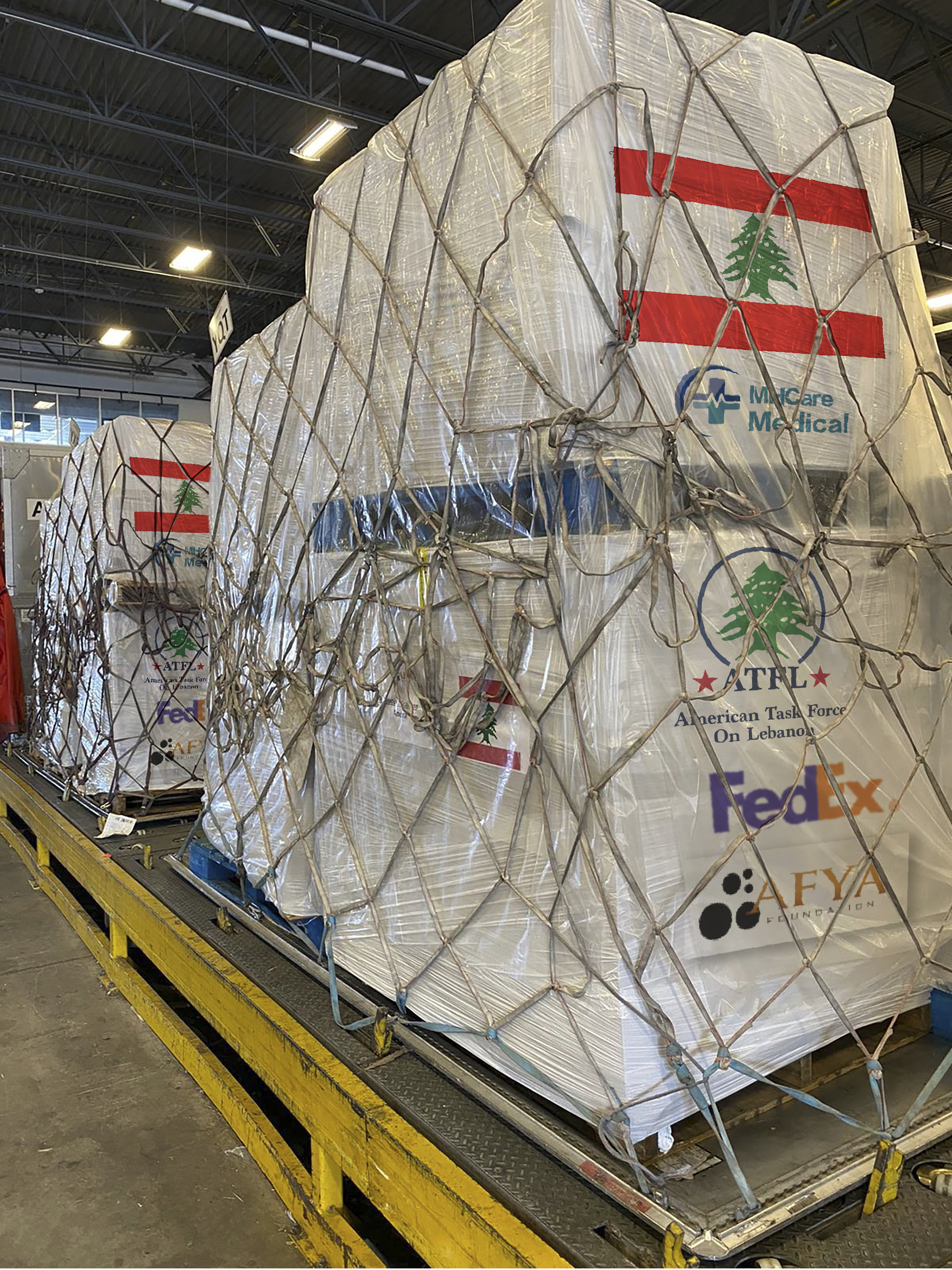 FedEx, which provided air transport for the first Lebanon Relief Project airlift on Aug. 24, again stepped into the gap and arranged for its trucks to carry supplies gathered by the Afya Foundation from warehouses in New York to Canada. Afya has been receiving large quantities of donated supplies, storing and coordinating shipping and logistics to ensure those supplies reach Beirut efficiently and effectively through air and sea freight. Once in Beirut, the supplies are managed by Anera, which offloads the shipments, clears customs, and distributes the various earmarked materials to Beirut hospitals of the nearly $6 million worth of medications from Direct Relief via Emirates Air or by Afya Foundation for the Cargojet shipment.