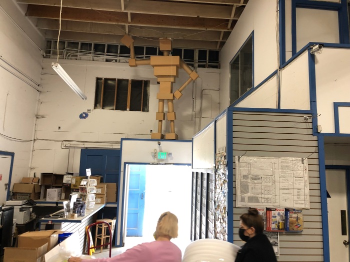 Something of a Santa Barbara secret for paper-product shoppers but well-known to shippers and cleaners, the retail store, housed in an old wooden warehouse by the railroad tracks, started life about 25 years ago, sales associate Kat Morton estimated, and was then bought by Empire Cleaning Supply in the 2010s. This morning the store still held janitorial supplies and equipment, gallon jugs of liquid soaps and drain cleaners, eight kinds of packing tape, colored tissue paper, gift bags, and cardboard boxes as large as a wardrobe. It had offered a packing and shipping service for artworks until bought by Aramsco about five years ago.