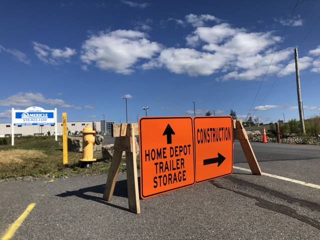 Signs point toward a Home Depot construction site off Research Drive in Jenkins Township on Friday afternoon. While the COVID-19 pandemic has had a devastating impact on the economy nationwide, many companies have expanded, opened or begun work on new facilities in our region in recent months.