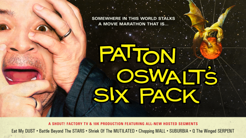 Patton Oswalt’s Six Pack Movie Marathon begins Saturday, November 7 at 9 a.m. PT/12 p.m. ET with an encore presentation Sunday, November 8 at 12 p.m. PT/3 p.m. ET. The livestream can be viewed on ShoutFactoryTV.com; Shout! Factory TV’s Roku, Amazon Fire, Apple TV, and Android apps; and the following digital streaming platforms: Pluto TV, Twitch, Samsung TV Plus, Comcast Xfinity, Xumo, Vizio, Redbox, IMDb TV and STIRR.