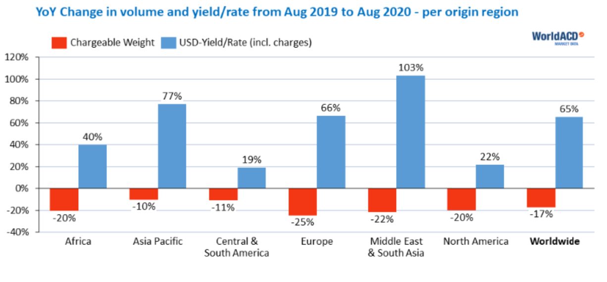 World ACD, an aggregator of airfreight market data, recently reported that the number of passenger flights has increased 18% since June, while the number of freighter flights has only increased 2%.