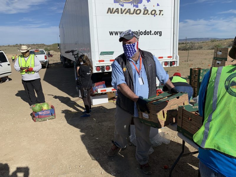 “If we’re going to address the coronavirus pandemic on our Nation, we also have to address the other pandemic, which is diabetes,” said Nez as he packed food boxes to be stacked in the back of residents’ vehicles. “I was noticing some of the other groups’ food boxes were full of things like white flour and cereal, so I put out a call for fresh produce, and one of the county supervisors in Santa Cruz arranged it.”