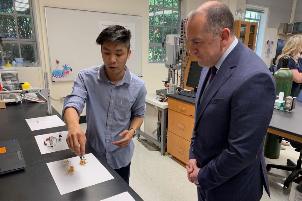 A team from the U.S. military that included Gabriel Camarillo, under secretary of the Army, learned how shrimp, ants and quantum computing could improve military operations and technology during a tour of three Duke University research labs Monday.