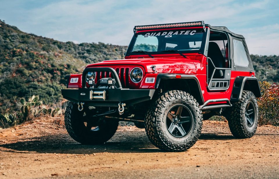 “The vehicle received over $15,000 in upgrades, including a 2.5-inch suspension lift, Quadratec bumper and rocker guards, 33-inch Nitto Trail Grappler tires, 15-inch Quadratec Rubicon Xtreme Wheels, LED headlights and taillights, Fishbone Tube Doors and Rear Bumper, Borla Cat Back exhaust, a Quadratec J5 light bar, and Kicker Speakers and Subwoofer.”