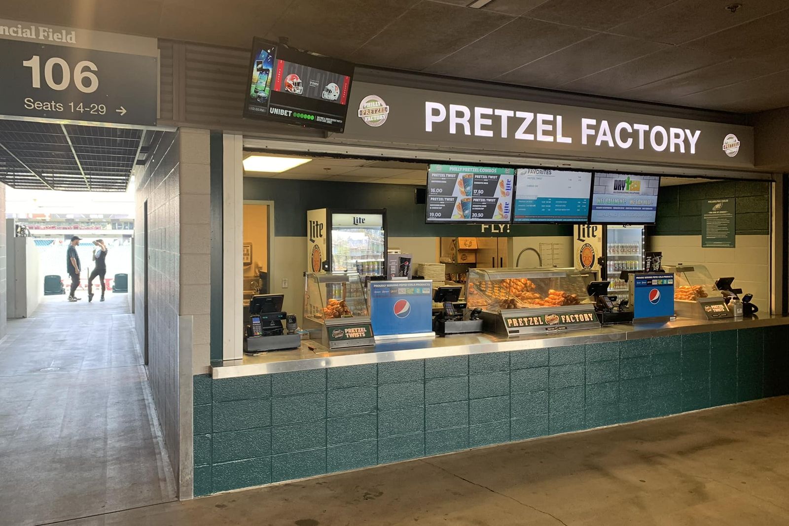 Officially open as of Monday, September 19 2022, the new Philly Pretzel Factory is located at Section 106 inside Lincoln Financial Field. Eagles fans can now indulge in their snack-favorite during home games and enjoy a limited menu, including Pretzel Twists that are baked on site that can be paired with cheese dip and your favorite Pepsi products.