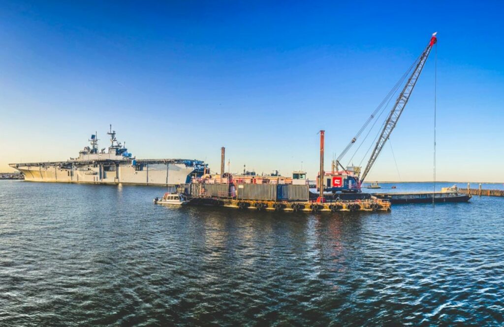 The company was contracted by the NAVFAC Mid-Atlantic Branch to deepen the Pier 11 South basin using their workhorse clamshell dredge the DB Ironbound.
