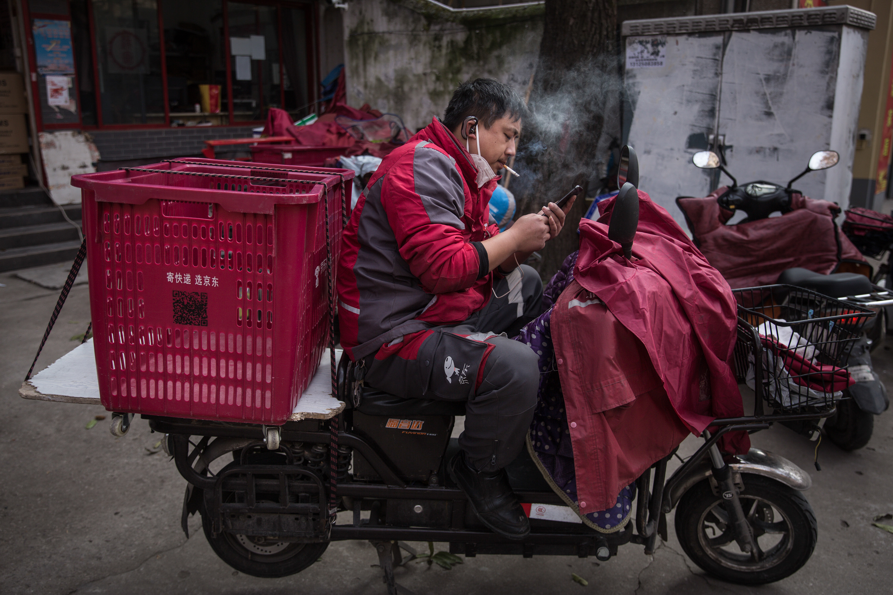 A prize-winning international photojournalist who lives in Wuhan has captured scenes of the couriers in action. The photographer asked not to be named because of concerns of being targeted by the government.