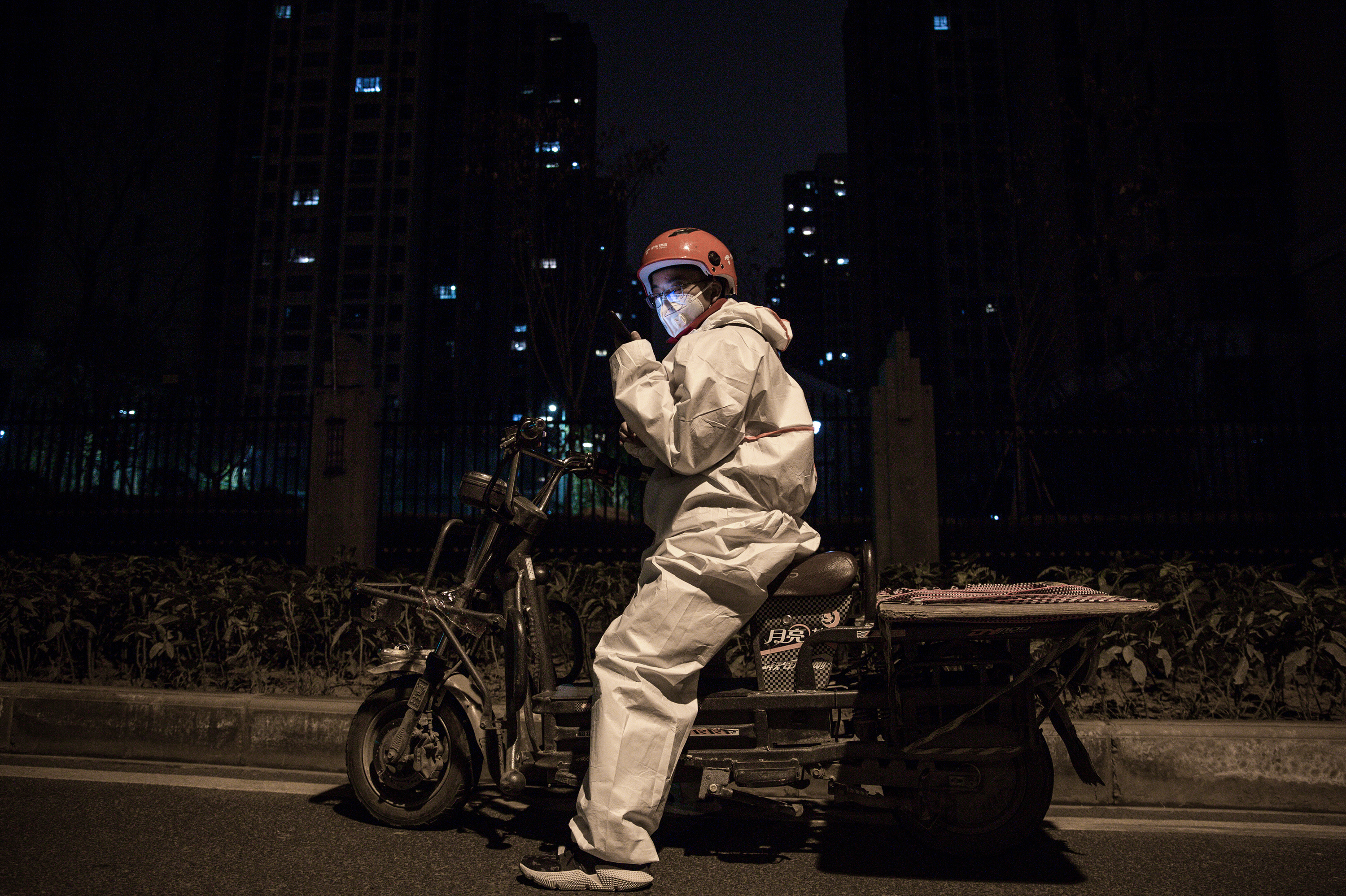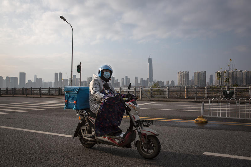 Wuhan, the epicenter of the coronavirus outbreak in China, has been in lockdown mode for weeks. But its delivery workers, zipping through empty streets on their motorcycles and scooters, are still very much on the move.