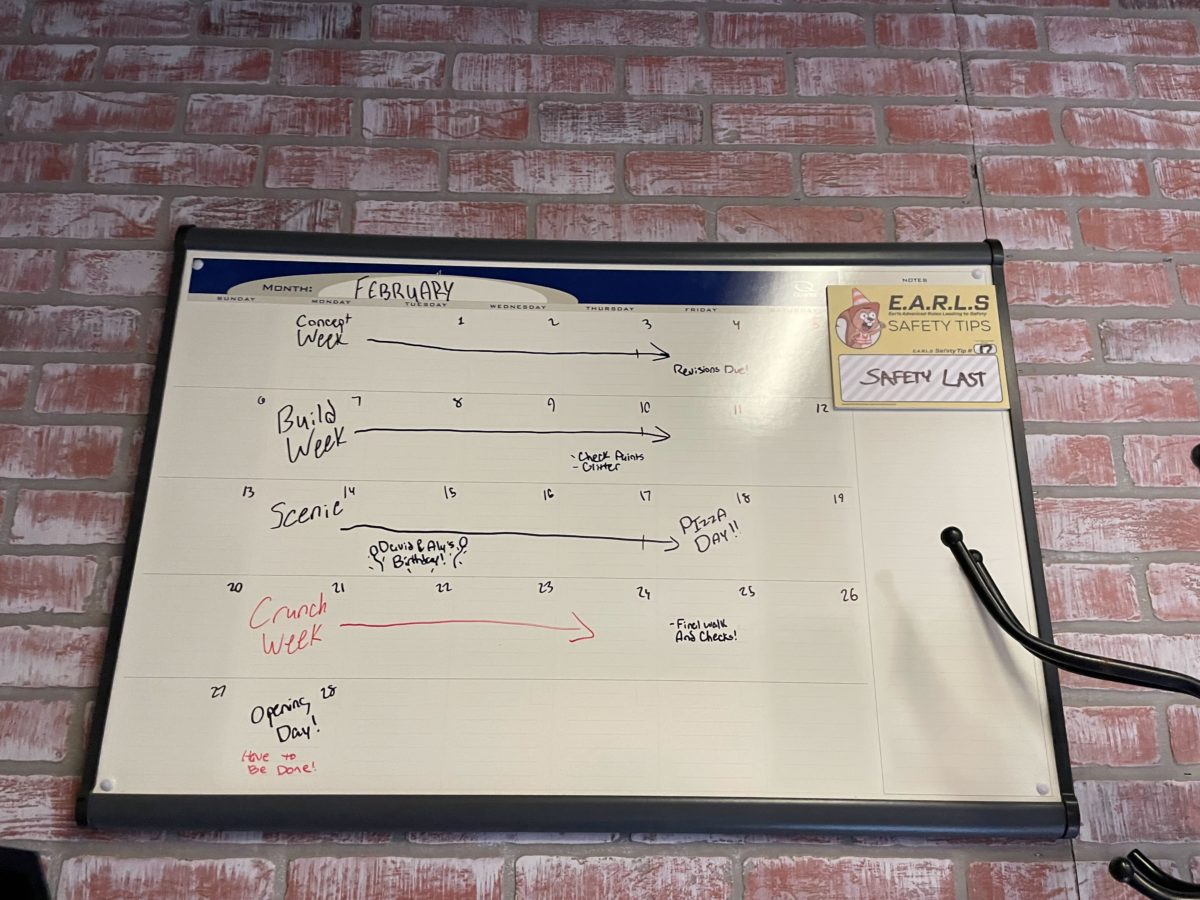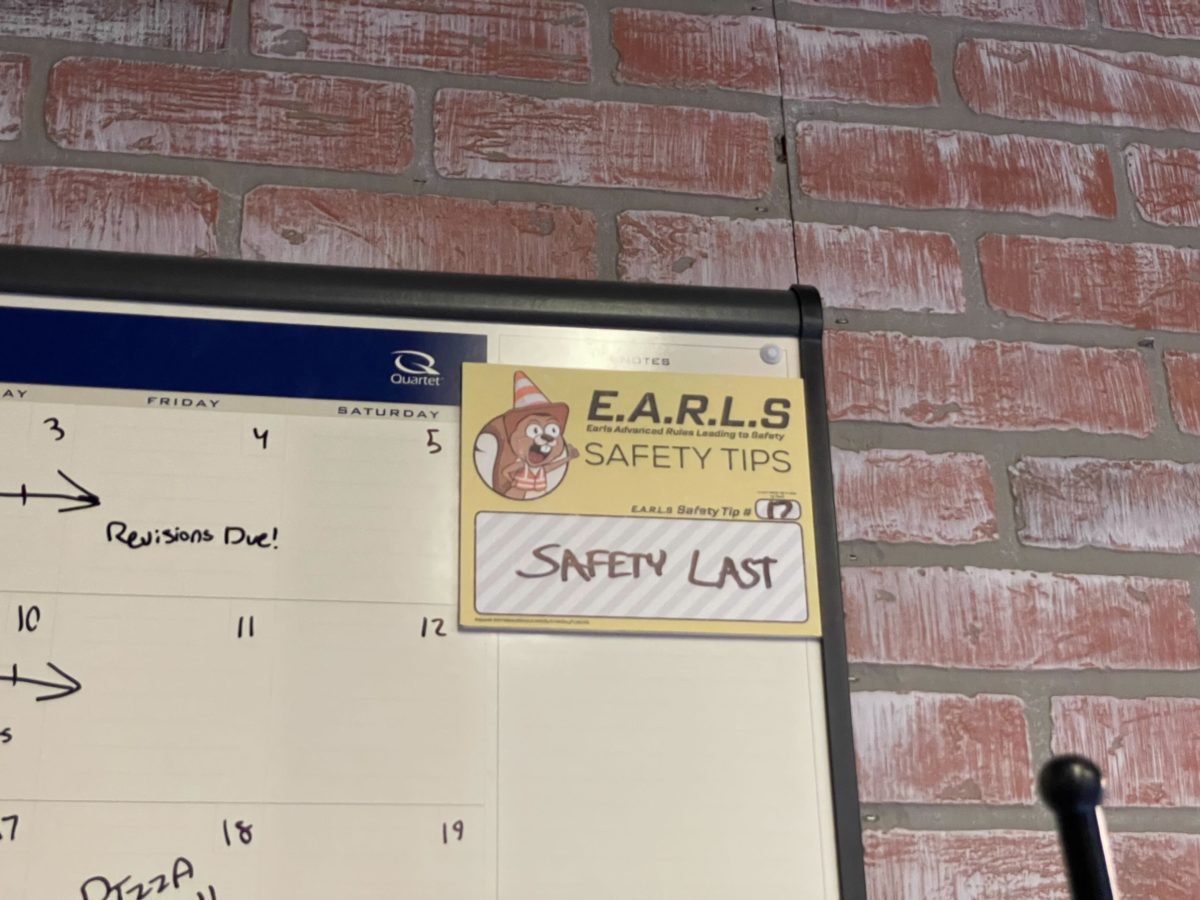 A whiteboard calendar in the corner has the first of “E.A.R.L.S. Safety Tips.”