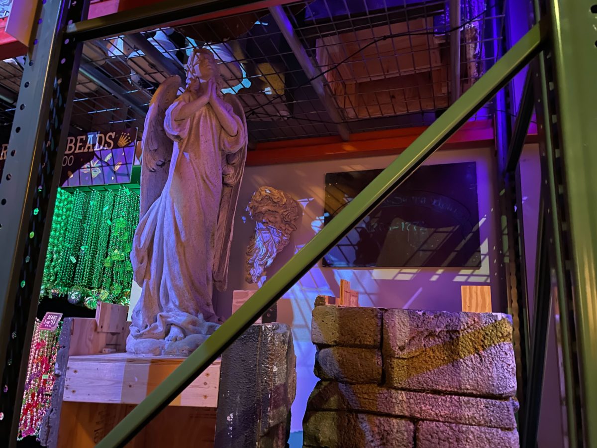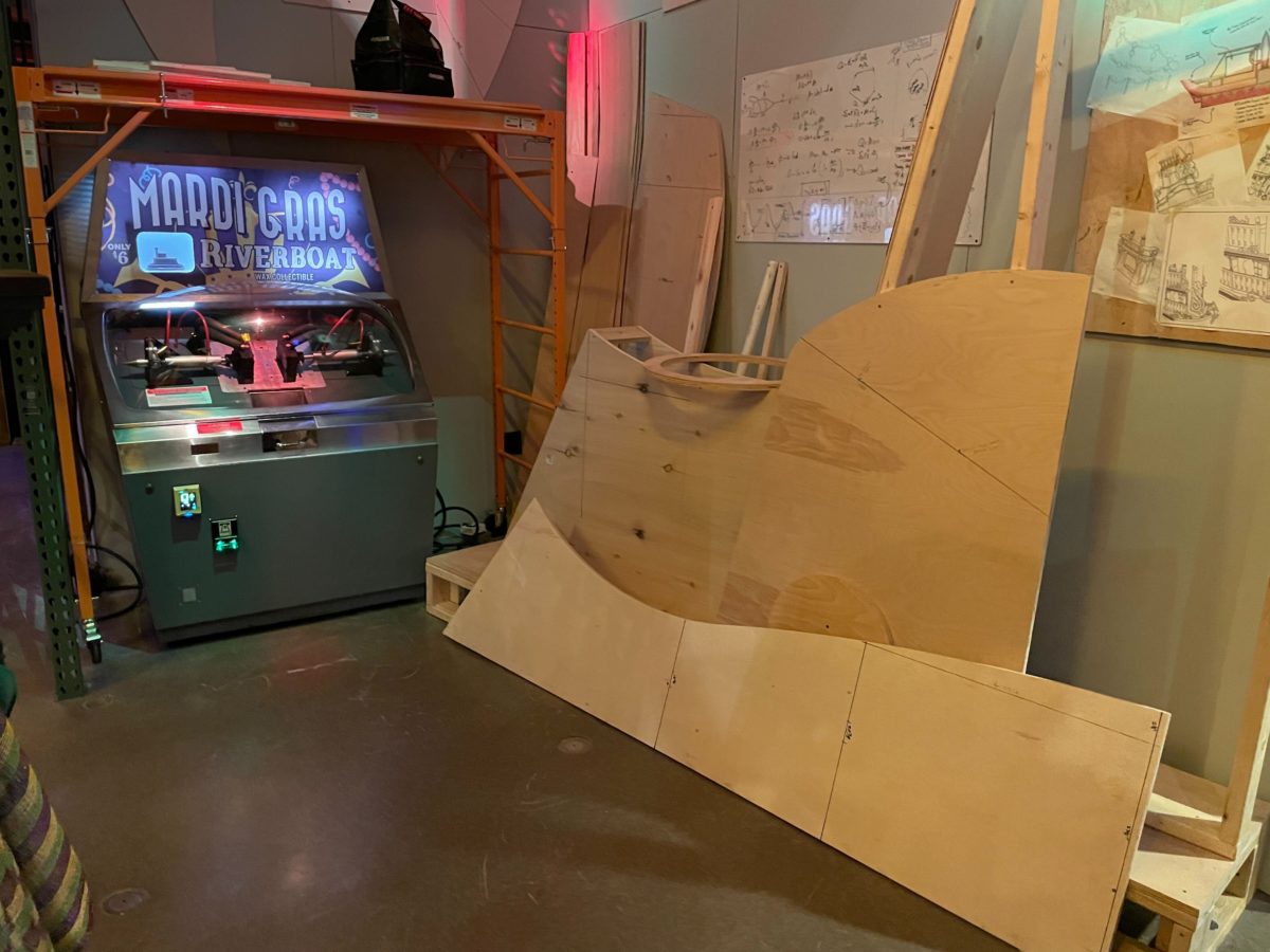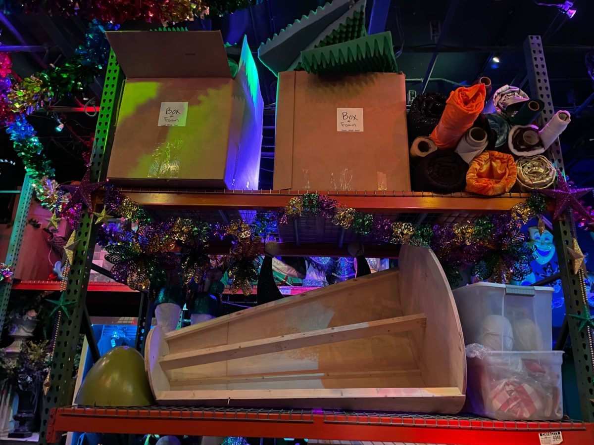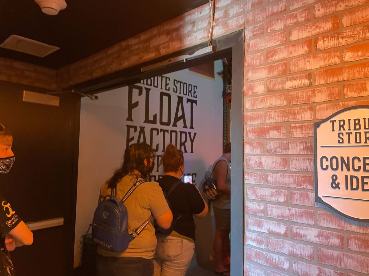 As the exterior façade implies, the Tribute Store is themed to a float factory — that is, a factory dedicated to designing and constructing parade floats.