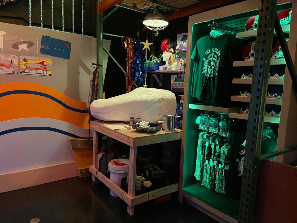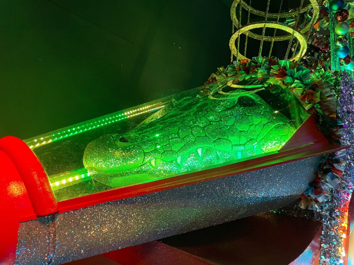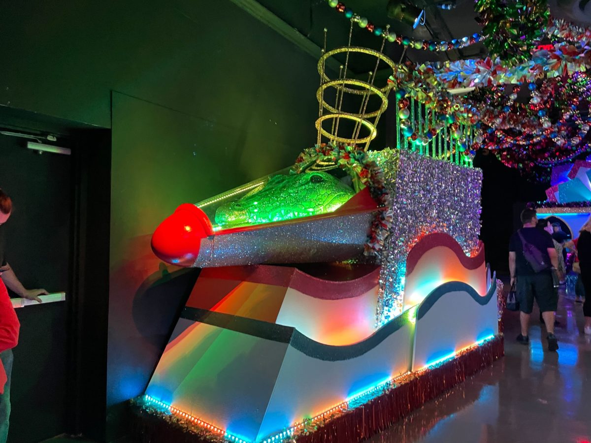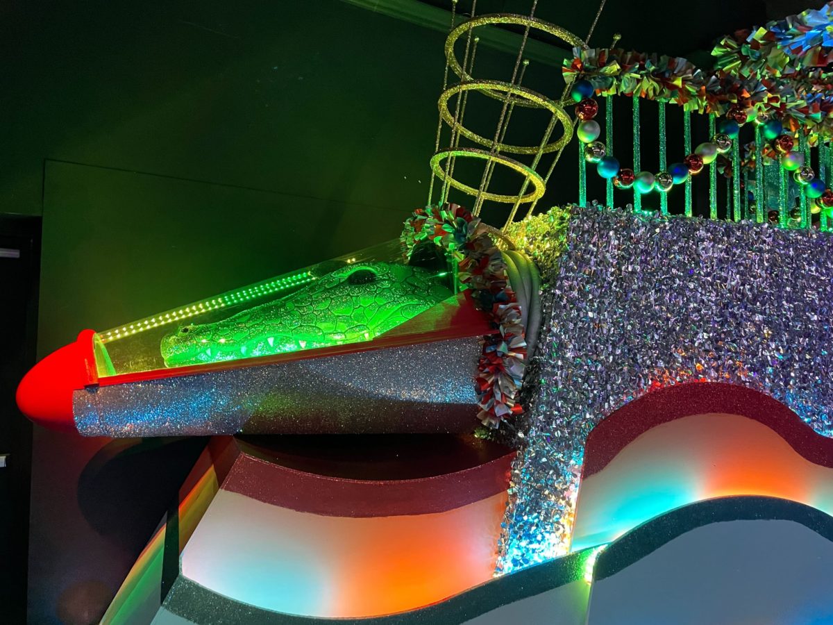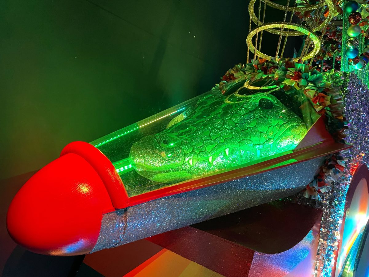 The main attraction of the Tribute Store is the completed space gator float.