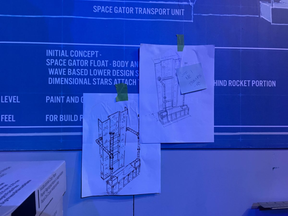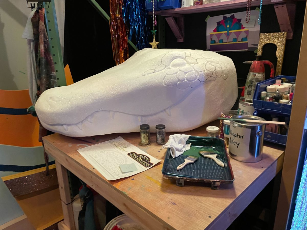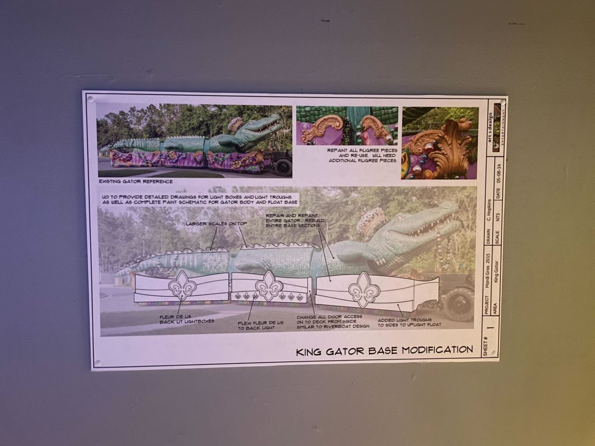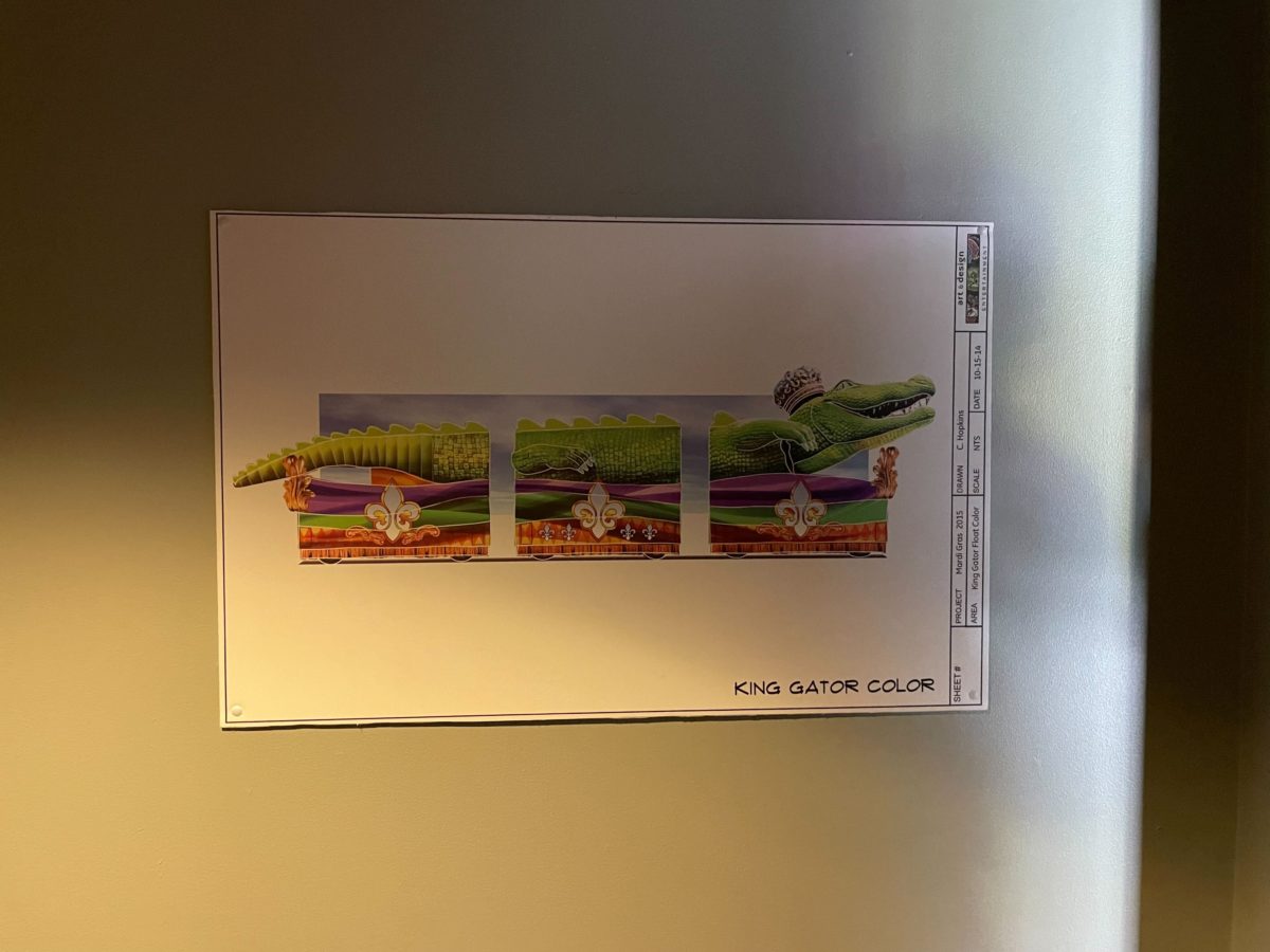 The main attraction of the Tribute Store is the completed space gator float.