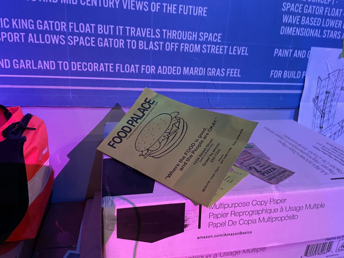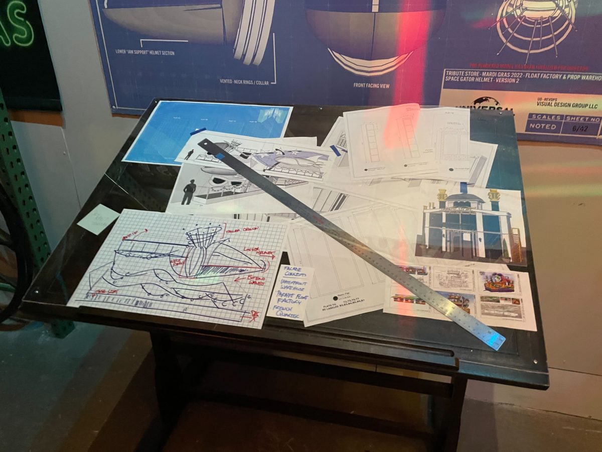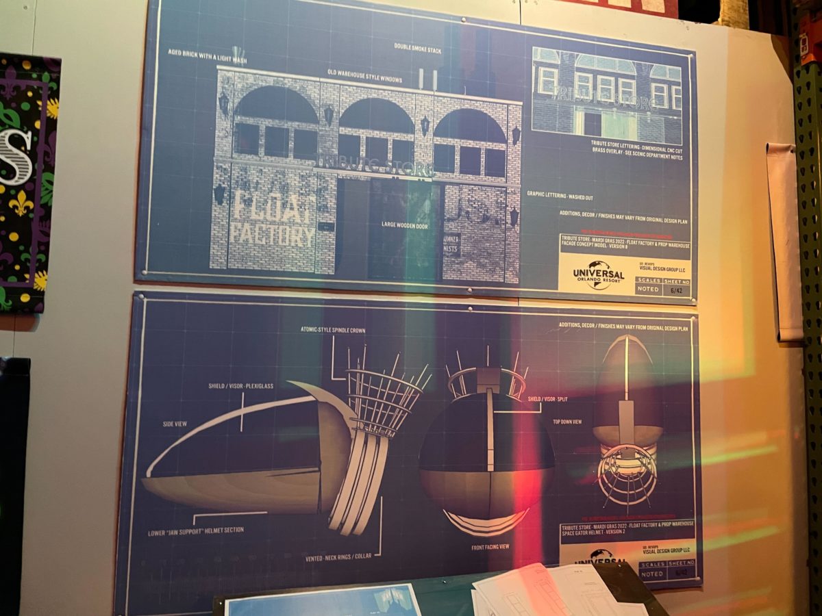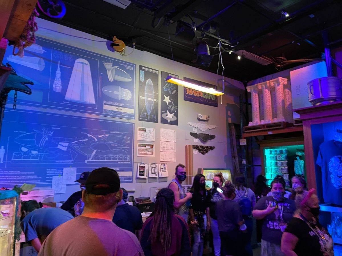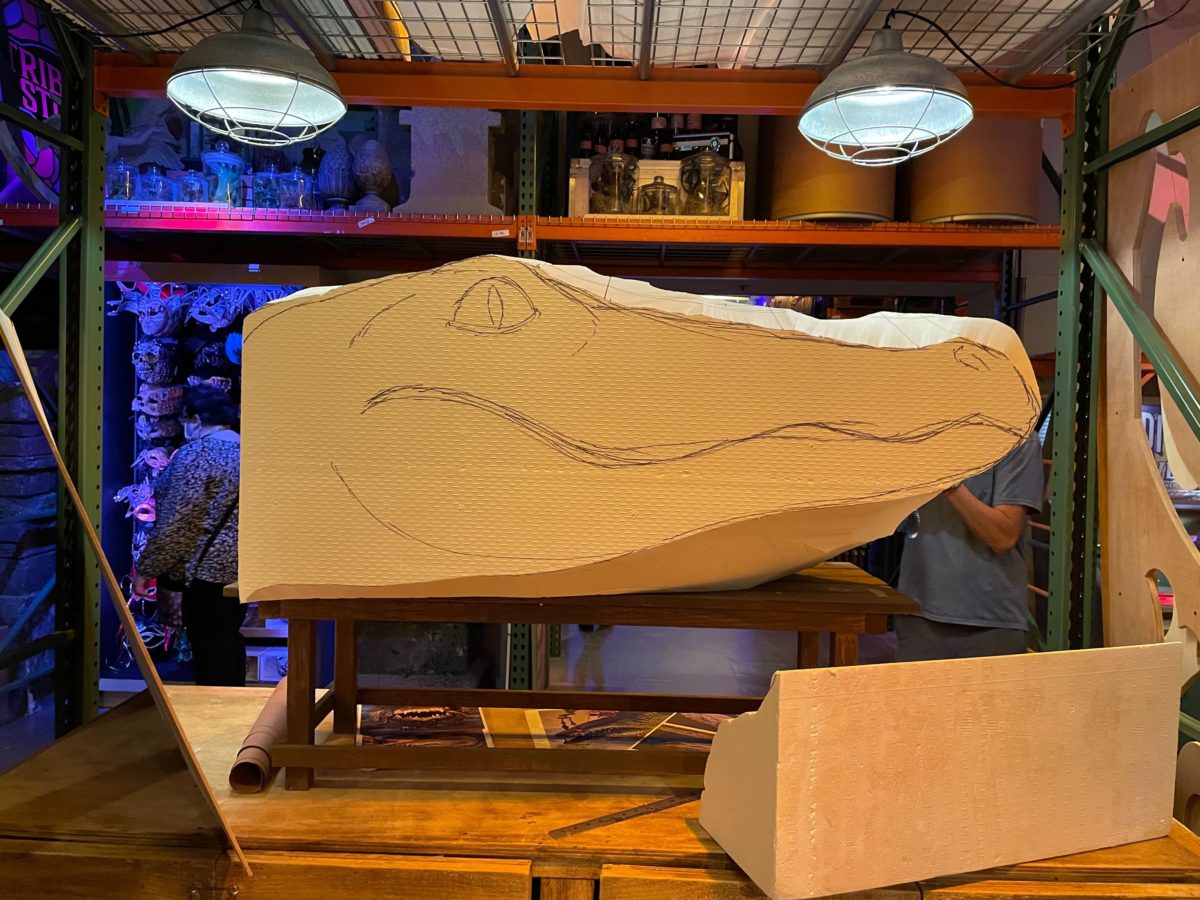The main attraction of the Tribute Store is the completed space gator float.