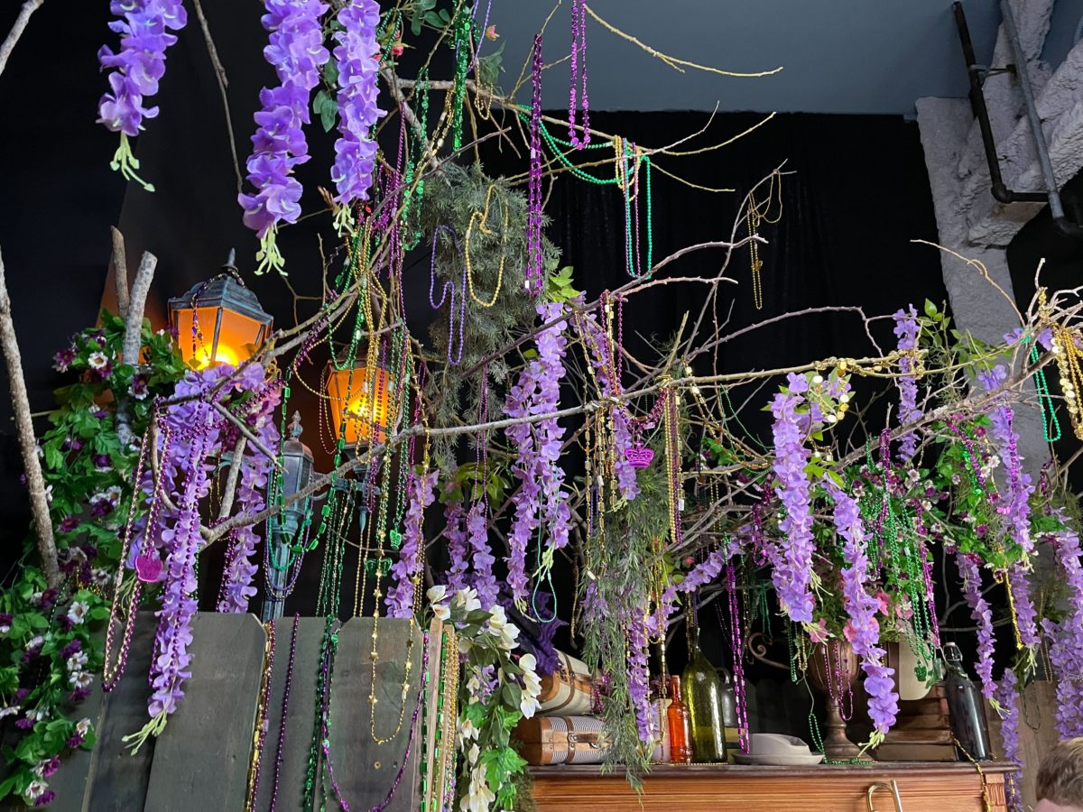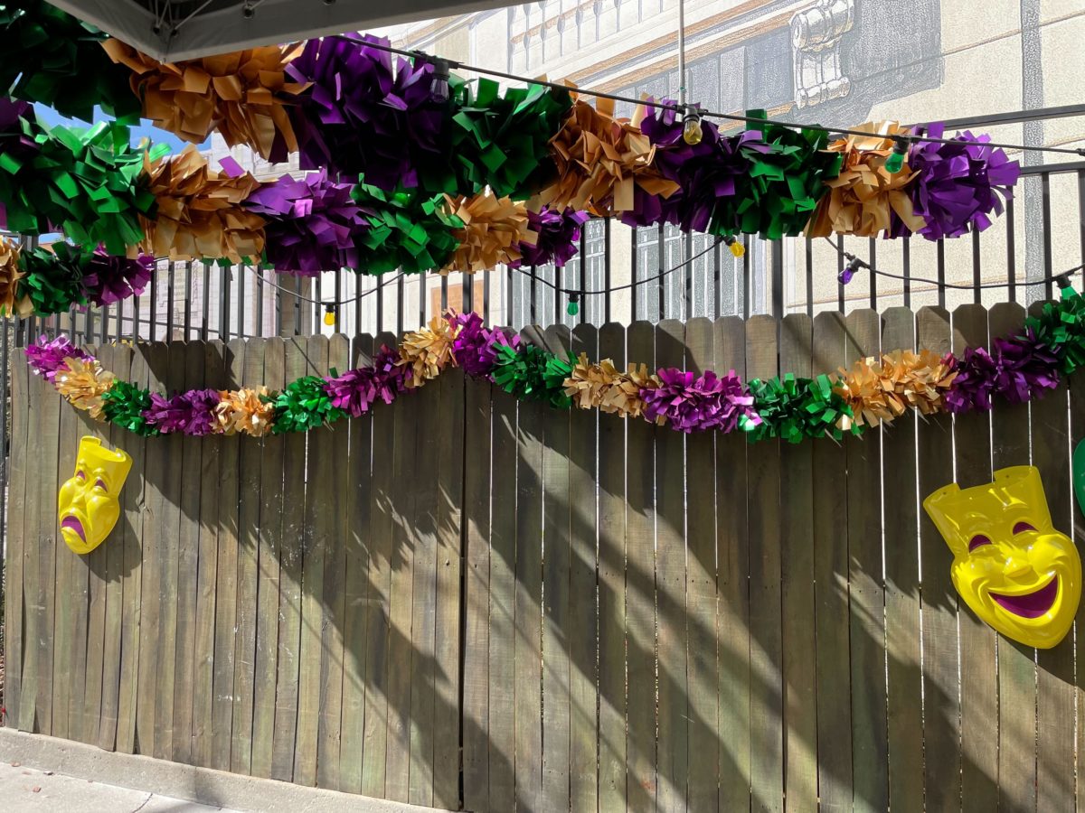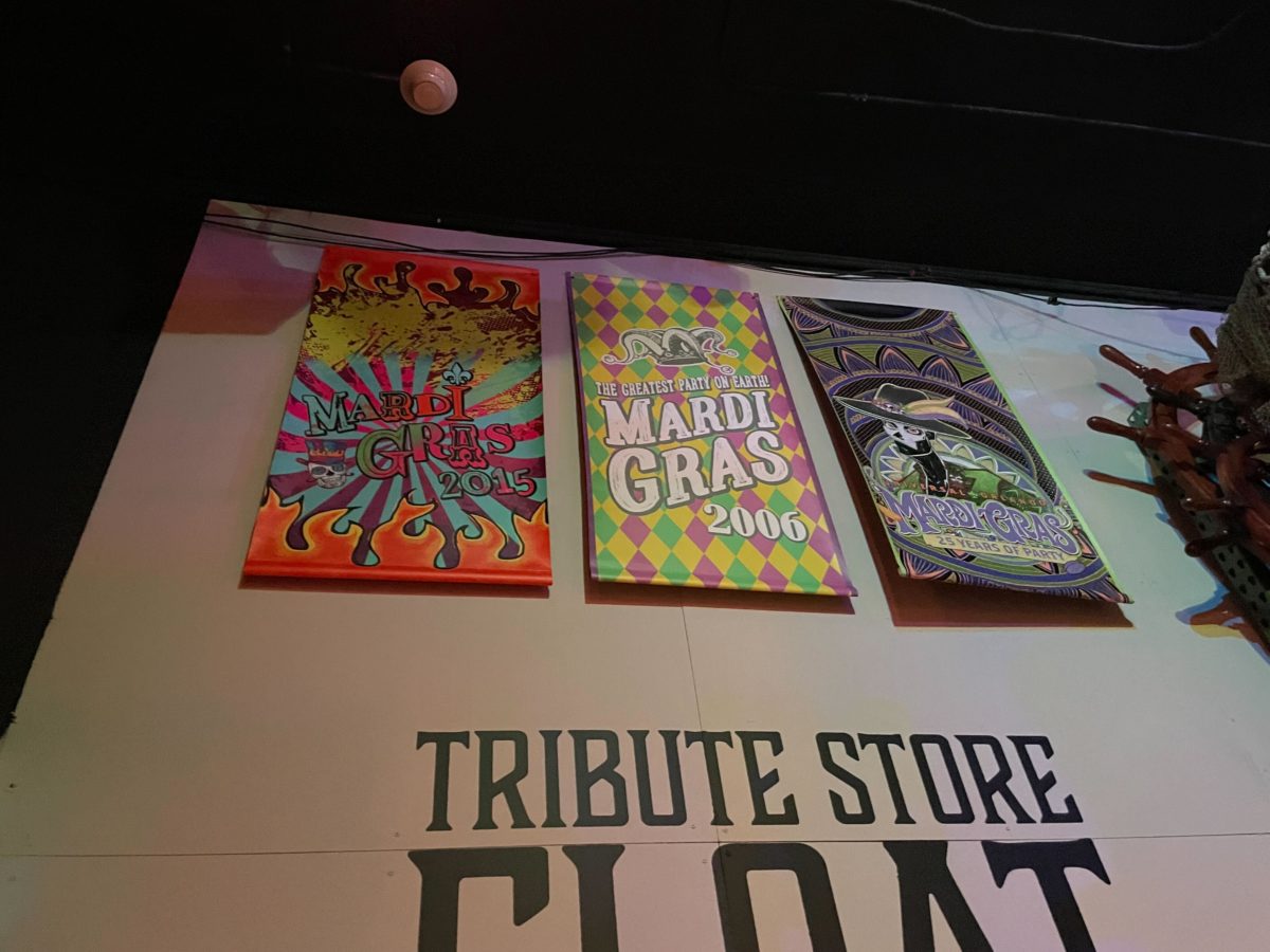 More Mardi Gras posters hang from the ceiling.