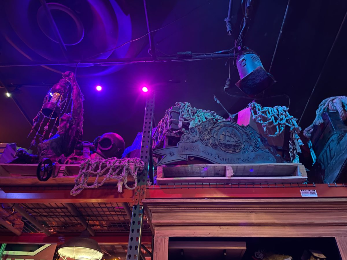 Look up, and you’ll see more props atop the shelves.