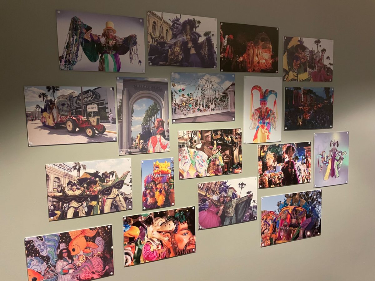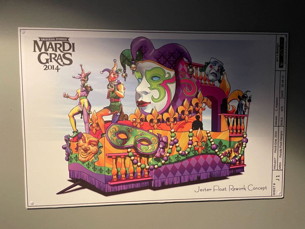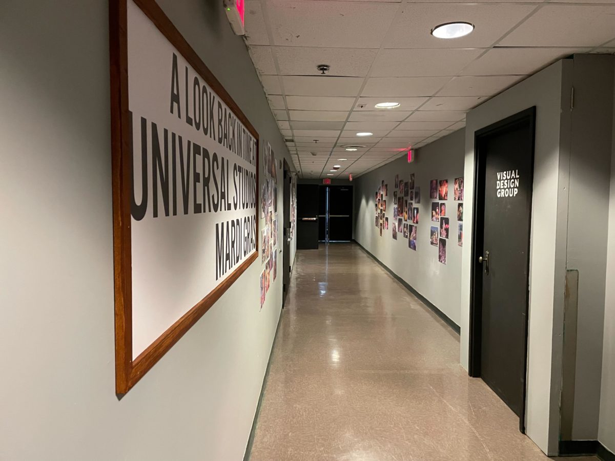 This year’s hallway features photographs from previous Universal Studios Florida Mardi Gras events.