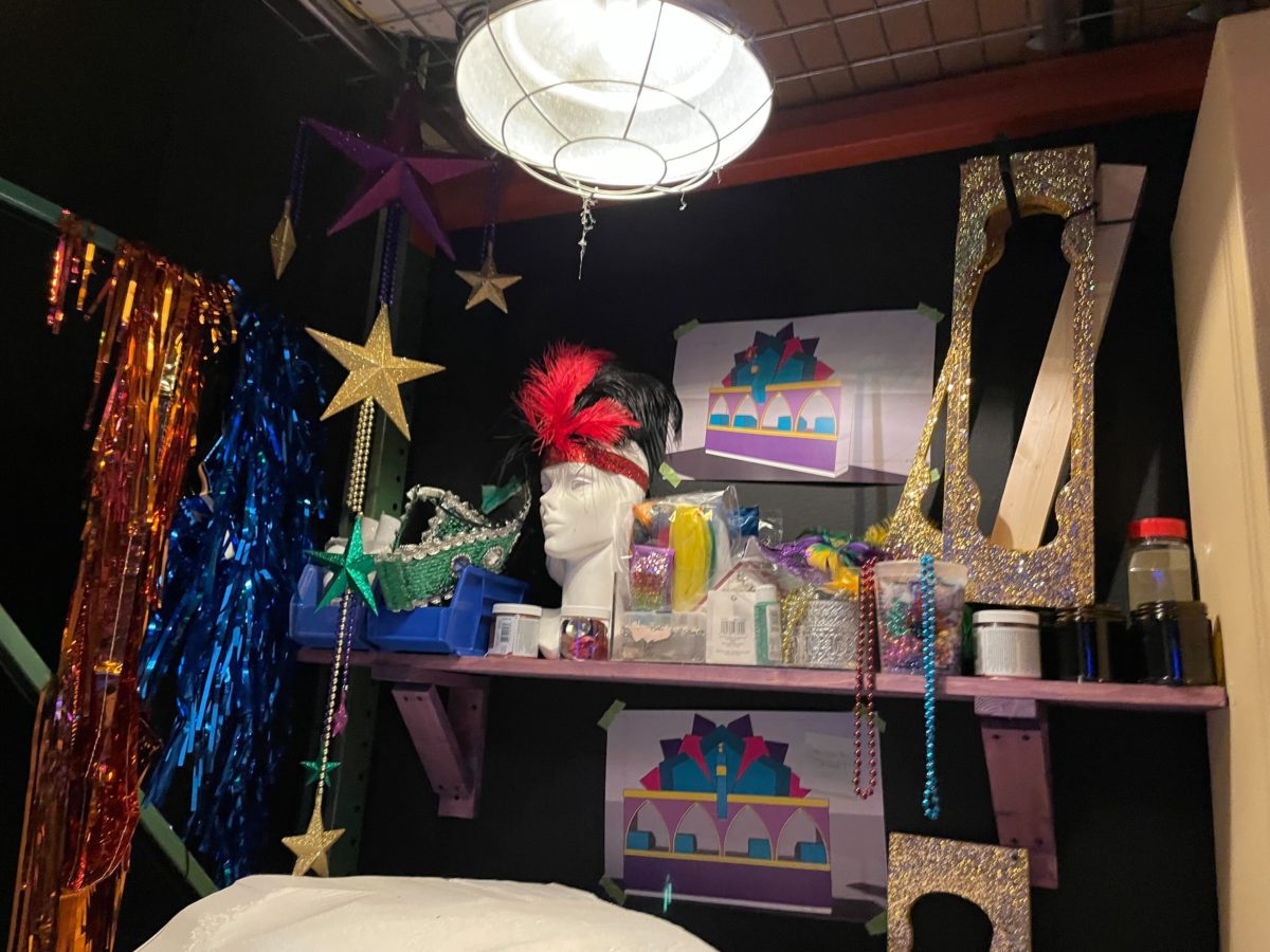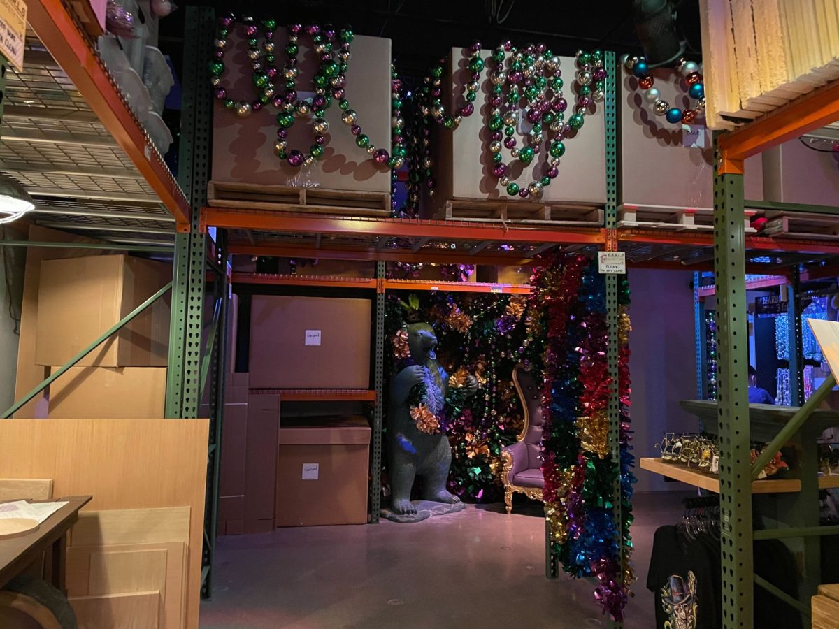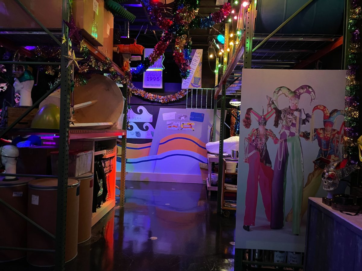 Banners from previous Mardi Gras events can be seen in the first room.