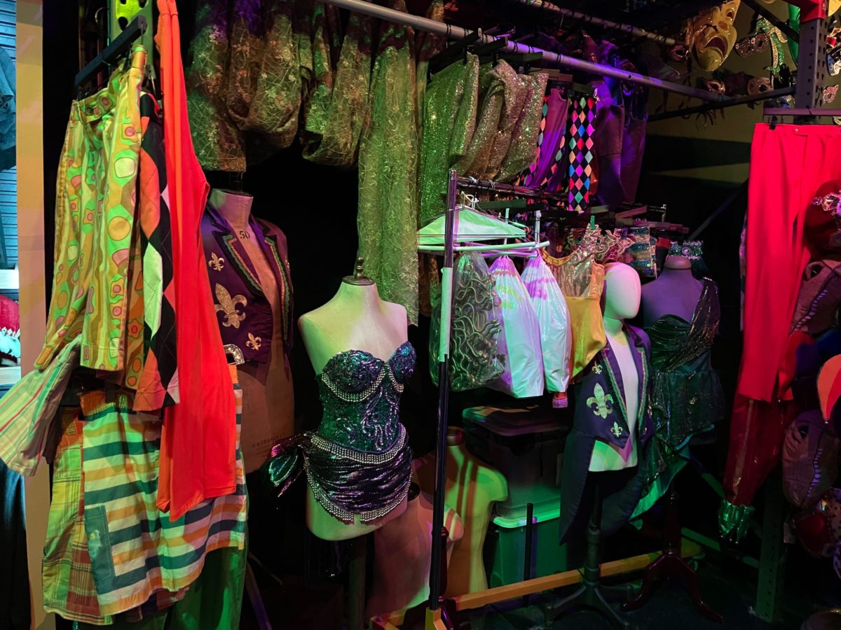 Moving further into the room are bright and colorful costumes.