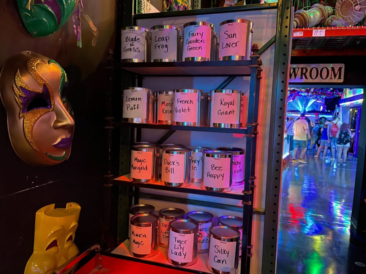 And before entering the showroom are several shelves of Mardi Gras-themed paint.