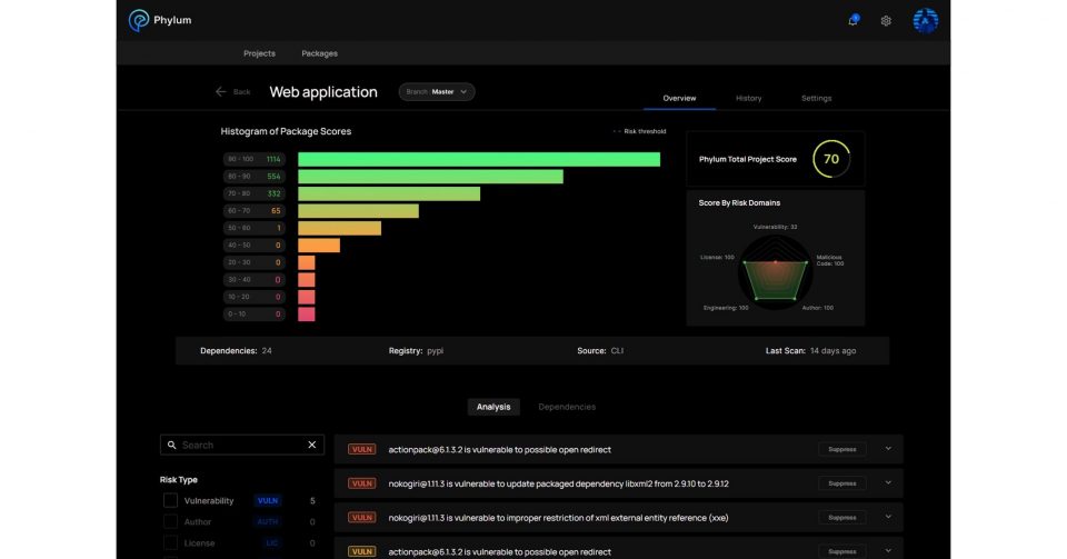 “Given the large volume of components involved in the development of modern software, surfacing meaningful findings becomes critically important – as does accurately prioritizing issues. Phylum defines the attack surface and conducts the deductive analysis, and users define risk tolerance based on project needs. This combination results in a significantly reduced attack surface, and categorized risk prioritized by business objective,” said Brad Crawford, vice president of product at Phylum and co-author of the MITRE ATT&CK Framework.