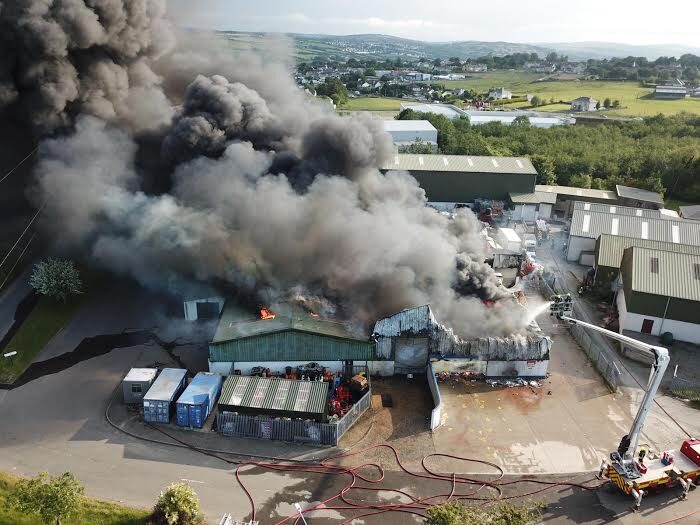 The blaze engulfed the Watson Hire store and adjoining HSE warehouse at Lisnennan, Letterkenny, in June 2020.