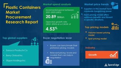 NEW YORK, Jan. 21, 2022 /PRNewswire/ — This report offers detailed insights and analysis of the major cost drivers, volume drivers, top suppliers, most suitable supplier selection criteria, supplier evaluation metrics, SLA that buyers should consider and innovations of the Plastic Containers procurement and sourcing market, which the global suppliers have been leveraging to gain a competitive edge across regions.