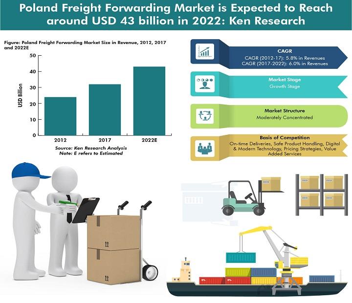 Ken Research in its latest study, Poland Freight Forwarding Market Outlook to 2022 – By Freight Mode (Land & Pipeline Freight, Sea Freight & Air Freight), By International & Domestic Freight Forwarding, By Major Flow Corridors (European Countries, Asian Countries, North American Countries & Rest of the World) and By Normal & Express Delivery, suggests that the freight forwarding market in Poland will grow at a gradual rate owing to the rise in trade, growth of the manufacturing sector and increasing consumption in the country