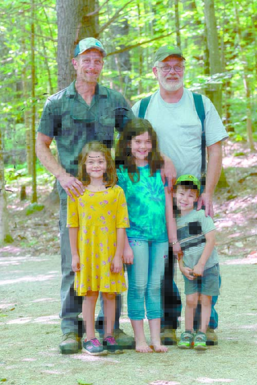 TRAIL CONTRACTORS Kyle Warren and Bruce Warren, owner of Warren Excavation, Inc., pose with Kyle’s children following the grand opening of the handicapped accessible trail. Warren Excavation was awarded the bid and completed the 0.7-mile long trail. (Photo courtesy of Peter Lewis, of QuirkWorks Studio)