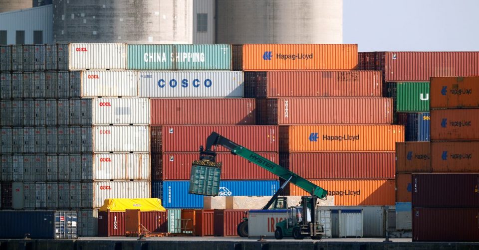 Shipping containers are stacked up at the Port of Antwerp, Belgium July 26, 2018. REUTERS/Francois Lenoir/File Photo