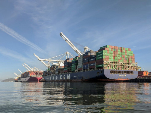 Ships lined up at Port of Oakland docks (photo courtesy of Port of Oakland)