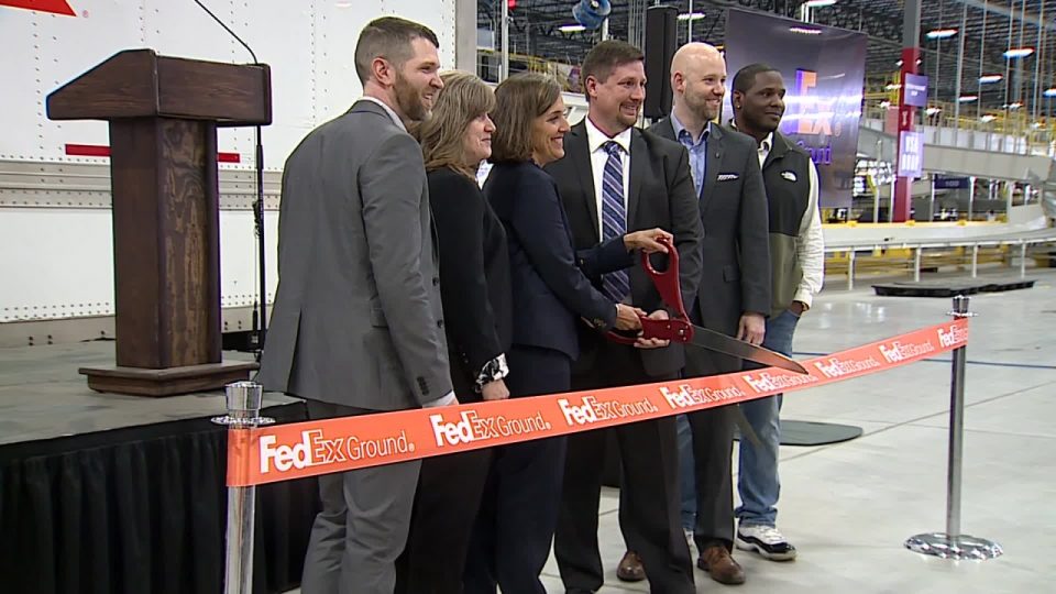 PORTAGE, Mich. (WOOD) — With a few smiles and a snapping of the scissors, the ribbon is cut for FedEx’s automated facility on Portage Road, about three miles from their former ship center on Sprinkle Road.