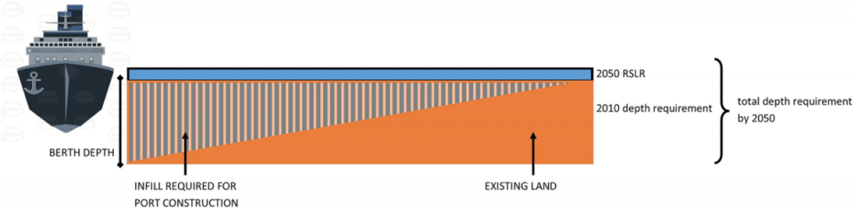 Seaport footprints will need to double or quadruple in size by 2050 to cope with the combination of sea-level rise and increased freight demand, according to a model that compares trade growth and port demand with various combinations of climate policy interventions and global temperature increases.
