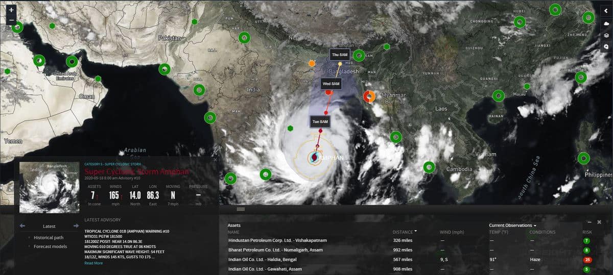The latest forecasts have Amphan making landfall Wednesday in the Ganges River Delta near the India-Bangladesh border, threatening the lives and livelihoods of millions of people and causing significant disruptions to supply chains in this extremely vulnerable area. This includes sea ports and oil facilities.