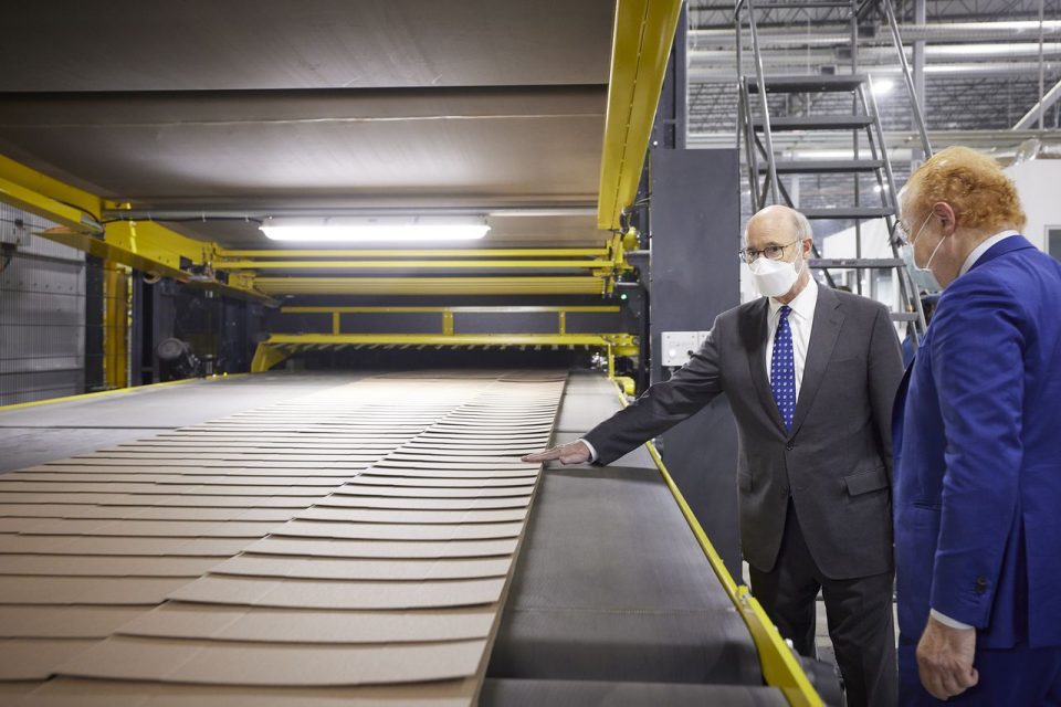 “This $150 million state-of-the-art box factory is our company’s most recent investment in America and we’re proud to have created another 215 full-time, high-paying, green-collar manufacturing jobs right here in Pennsylvania,” Pratt said, shortly before officially dedicating the new plant with Wolf.