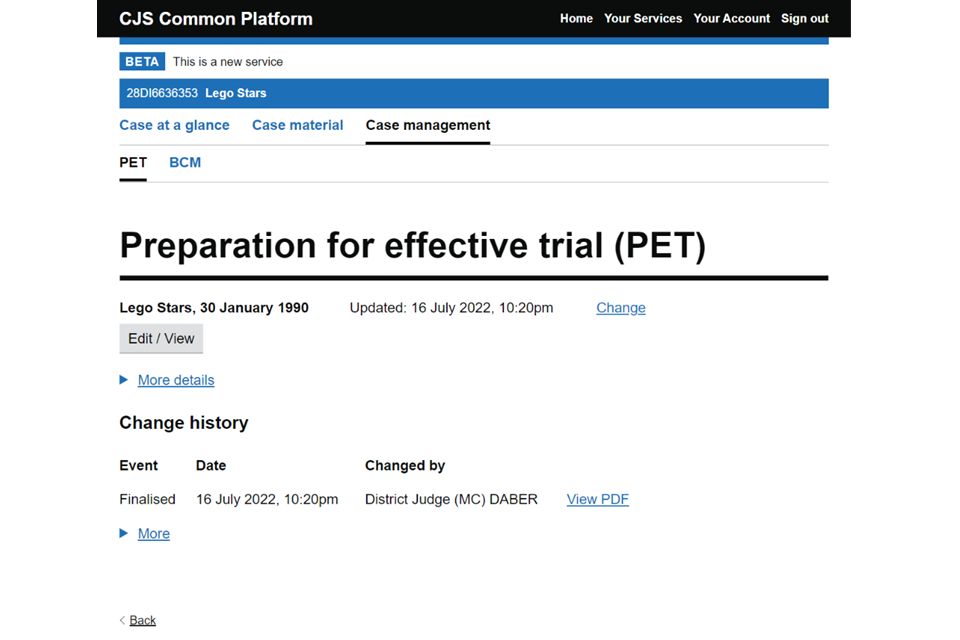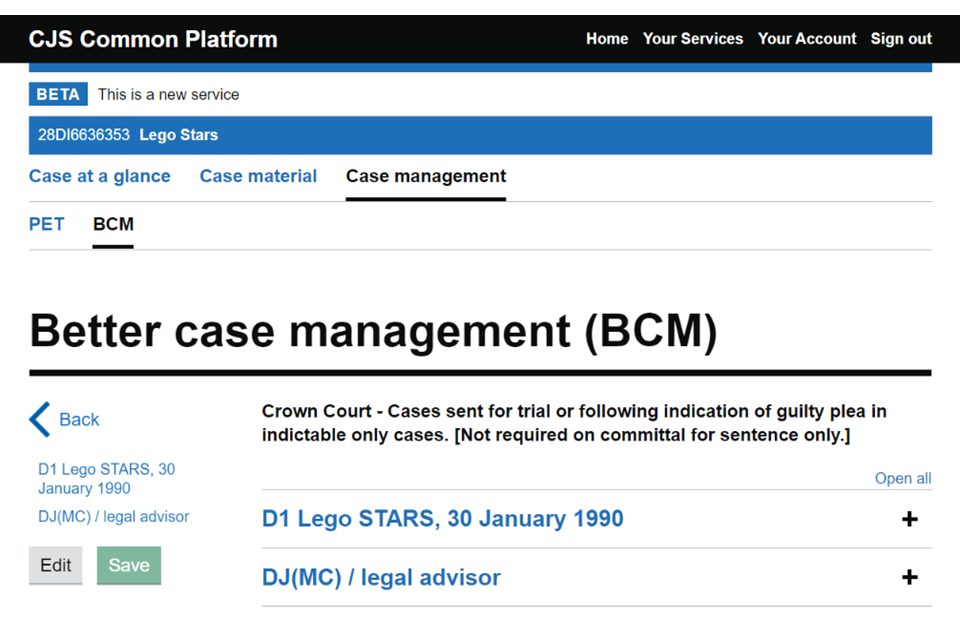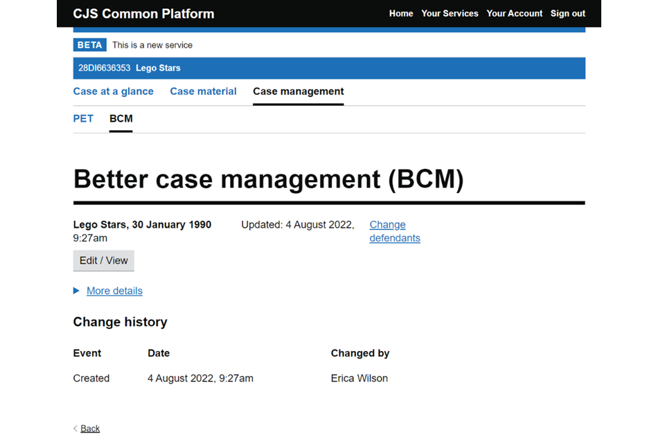 The better case management (BCM) form is completed by the court, so you should not need to add any information to it. However, you can view it in Common Platform and edit if necessary.