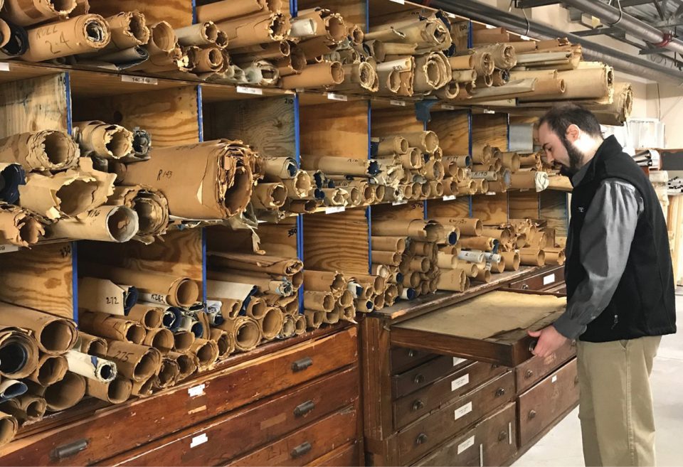As you can imagine, the volume of folders, flat plans, rolled plans and field books from 168 years of work requires a substantial amount of physical space; and if not stored correctly, those historical documents could become damaged and even lost forever. Proper cataloging also is paramount for retrieval and use of the documents. The solution was to bring on Travis Yacovitch as a full-time Archivist to digitize and catalog the thousands of historical records as well as the new ones that are continually being created by the firm.