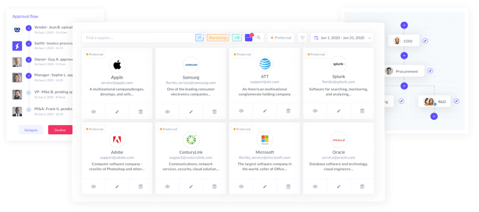 The software-as-a-service (SaaS) platform creates custom approval workflows and tracks requests, orders, and vendor onboarding in real-time. And it integrates directly with existing ERP (Enterprise Resource Planning) solutions and securely syncs with real-time budgets.