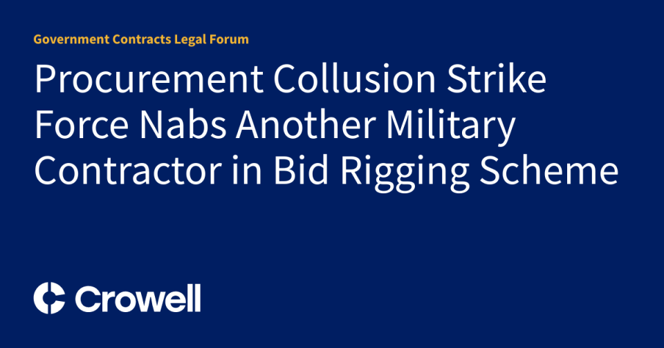 On June 23, 2022, a federal grand jury returned an indictment against Army contractor Envistacom LLC and two of its executives alleging participation in a fraudulent scheme that deprived the federal government of competition and making false representations to the government in furtherance of the conspiracy. The indictment also charged the executive as a co-conspirator, and asserts the conspirators coordinated in the preparation of so-called “competitive quotes” submitted in connection with 8(a) set aside contracts. The quotes were allegedly fraudulently inflated in order to all but guarantee the government customer would sole source the award to the conspirators’ pre-determined bidder. This indictment represents the fruits of yet another investigation by the Department of Justice’s Procurement Collusion Strike Force (“PCSF”).