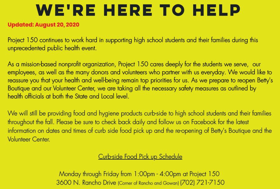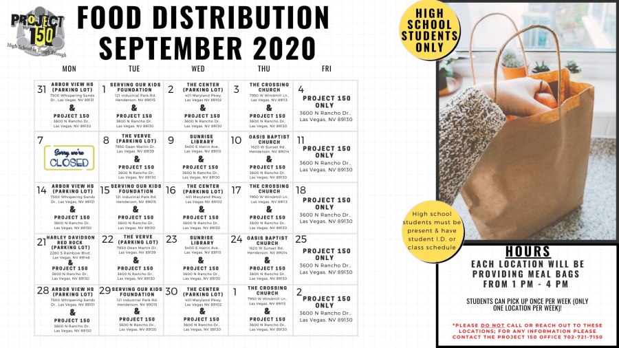 LAS VEGAS – Project 150, which provides food and hygiene products to homeless, displaced, and disadvantaged local high school students, has added eight pop-up locations to better help students as schools starts.
