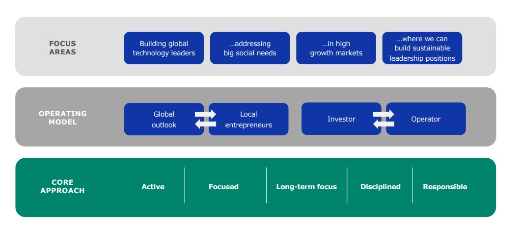 It essentially tries to invest in a lot of companies. Most of them never really go anywhere and stay small investments/holdings until they are divested or picked up by others.