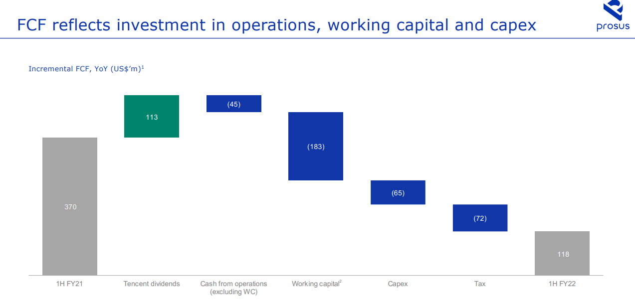 Prosus FCF Prosus 1H22 results