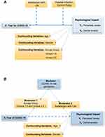 Increased public awareness on the risk of transmission of infective agents amongst dental patients and care providers has been shown to add extra preventative measures to clinical practices, during COVID-19 pandemic times.3 Previous studies have registered a pooled prevalence of anxiety levels, due to both endodontic procedures related and unrelated factors.4 Such endodontic procedures related to psychological effects are influenced mainly by prior experiences. In a pandemic situation, these psychological effects were compounded by the additional fear of contracting COVID-19.5 The majority of psychosocial researches reported until now are in context of medical conditions unrelated to emergency and elective dental treatment. Thus, studies addressing the magnitude of mental health burden in dental patients in correlation with a pandemic as an unrelated contributing external factor will prove extremely informative. From a public health perspective, such organized studies can provide insights and clarity for dealing with psychological burdens in patients, who are under the influence of fear factors from more than one unrelated medical source. Aligning with this rationale, in the present study a double moderation and a dual moderated mediation model has been tested. In this model, patient satisfaction and confidence from emergency dental health services were expected to buffer the fear arising from the COVID-19 pandemic (Figure 1A). Satisfaction due to improved medical assistance experienced by the patients at the time of endodontic procedures helped in managing mental stress arising from the COVID-19 pandemic. This demonstrated how alleviation of stress from one medical condition could help in co-managing the mental burden from an unrelated medical cause. The above model was based on the postulation that COVID-19 fear could expand the risk perception, adding to the likelihood of mental distress. So, we also hypothesized that Satisfaction-with-Life would attenuate the association between risk perception and mental distress. Therefore, we further included the survey group (Unlock 1.0 and Unlock 2.0) as a moderator between fear for COVID-19 and risk perception. This is based on the fact that the COVID-19 is expressly circumstance related, while satisfaction of life is more steady and therefore likely to follow different temporal dynamics (Figure 1B).