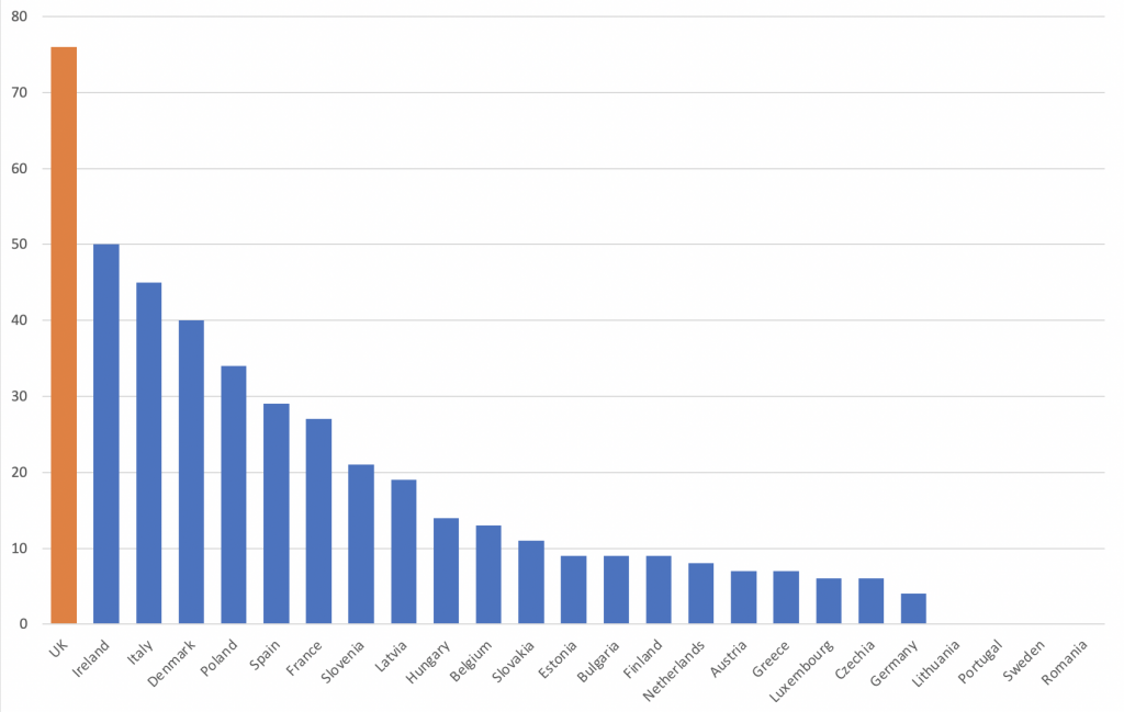 Figure 1: Number of contract modifications per EU country (January 2016-May 2021).