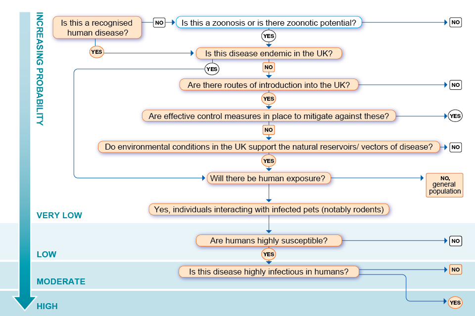 This section of the assessment examines the likelihood of an infectious threat causing infection in the UK human population. Where a new agent is identified there may be insufficient information to carry out a risk assessment and this should be clearly documented. Please read in conjunction with the Probability Algorithm found at Annex A.