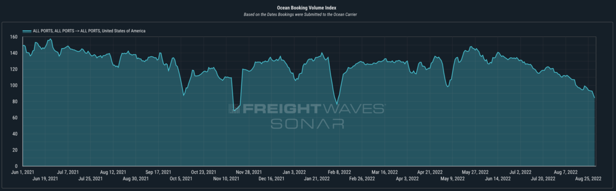 FreightWaves analyst Henry Byers called for a dramatic drop in U.S. imports based on ocean container bookings data that we saw in June: That drop is now materializing in a major way.