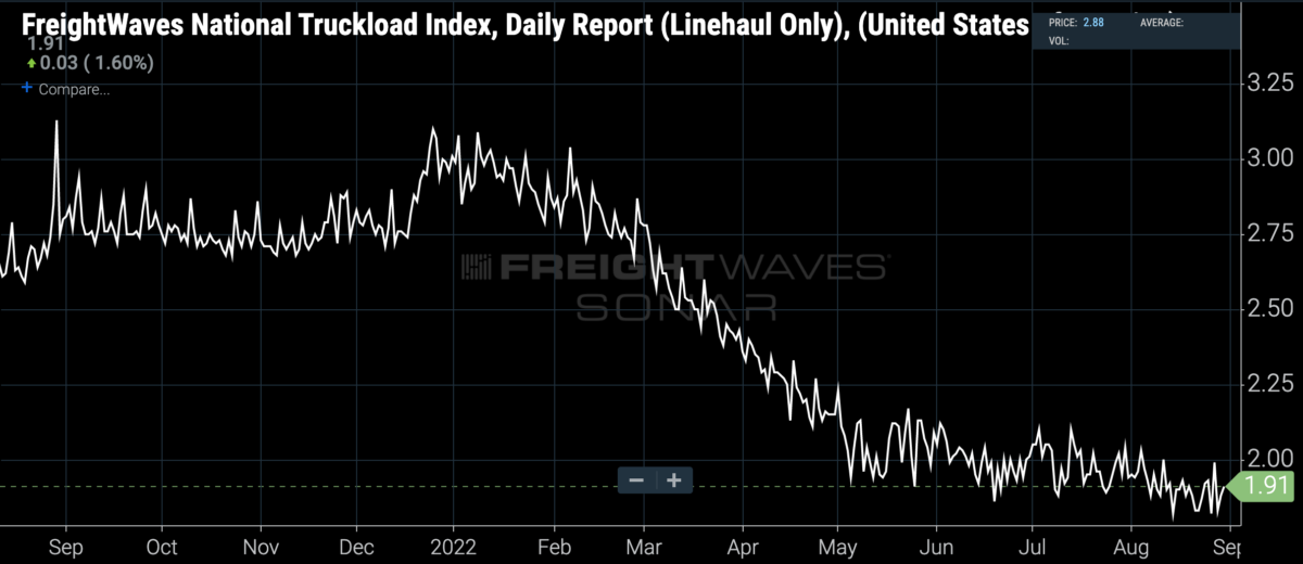 An analyst at a top 10 freight brokerage told FreightWaves: “Our view is that the high-volume, ‘live pick, live drop’ contract freight is going to see contract rates down into next year.